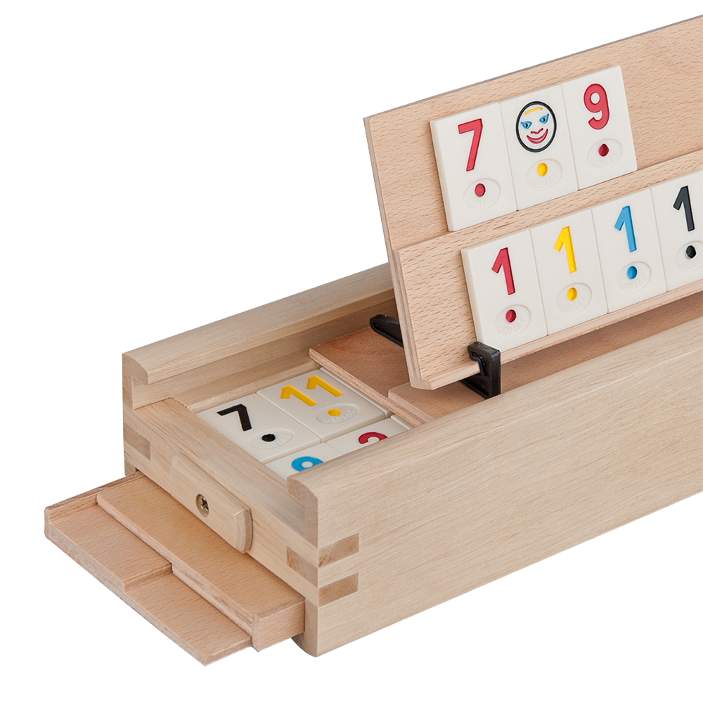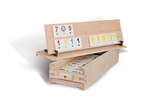 Rummy game made in Romania at the well-known board game manufacturer from Medias, Rosian Express. It is an elegant, high quality set, with wooden tablets and composite parts (stone and bone), which gives both weight and greater wear resistance.